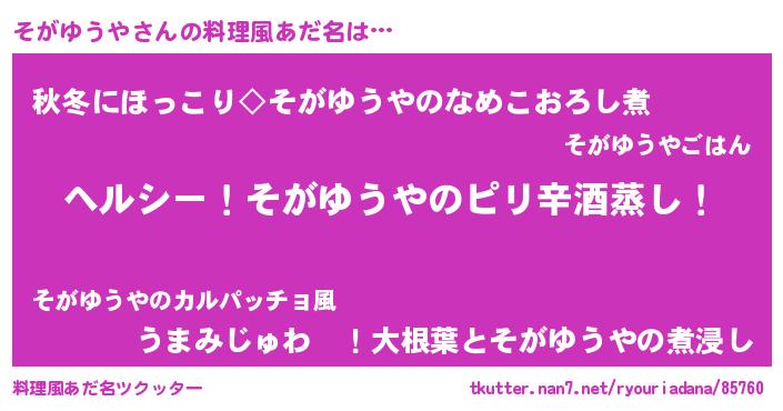 | 意味不明あだ名 | 『自称そがゆうや』 |
