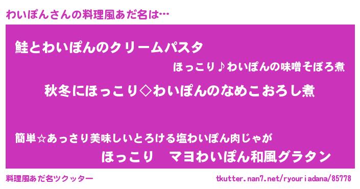 | 男性向けラノベタイトル風あだ名 | 『わいぽんに滅ぼされるだけの簡単なお仕事です』 |