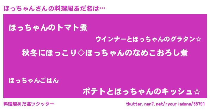 | ヒーロー風カッコイイあだ名 | 『慈愛の使者ほっちゃん』『天弓騎士ホッ』 |