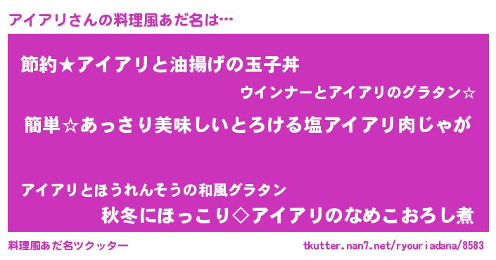 | ヘコむあだ名 | 『アイアリ(遠い目)』『アイふぇ~』 |
