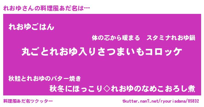 | 女子向けラノベタイトル風あだ名 | 『乙女ゲームの破滅フラグしかない悪役れおゆに転生してしまった…』 |