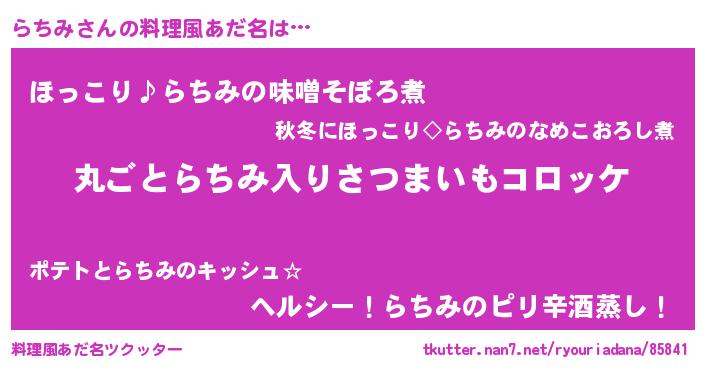 | ヘコむあだ名 | 『らちふぇ~』『らちぷりん』 |