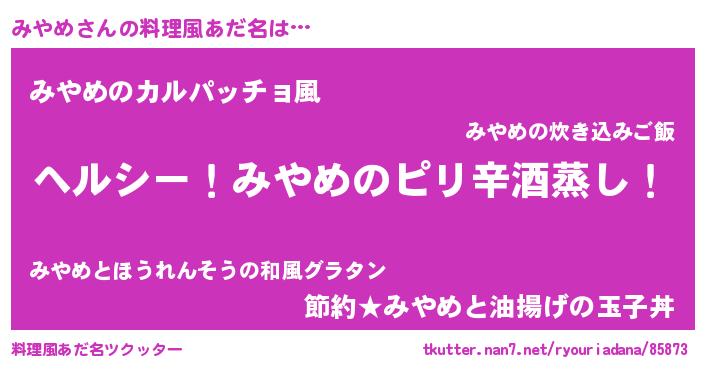 | ヒーロー風カッコイイあだ名 | 『最強戦士ミヤメ』『仮面ミヤダー』 |