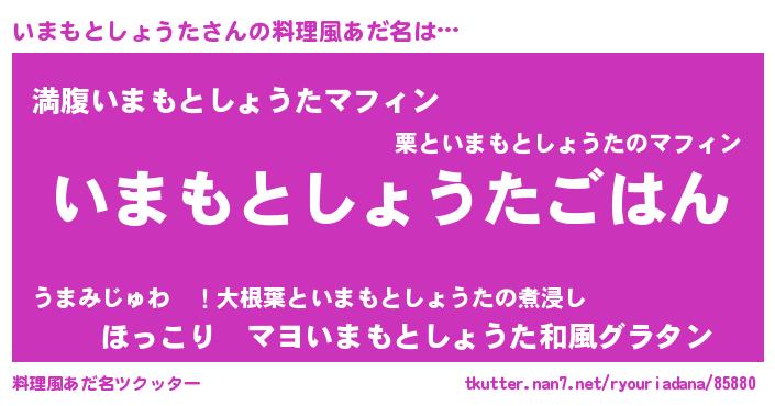 | 胡散臭い通販商品みたいなあだ名 | 『絶対に幸福をもたらす健康食品…その名も「いまもとしょうた」』 |