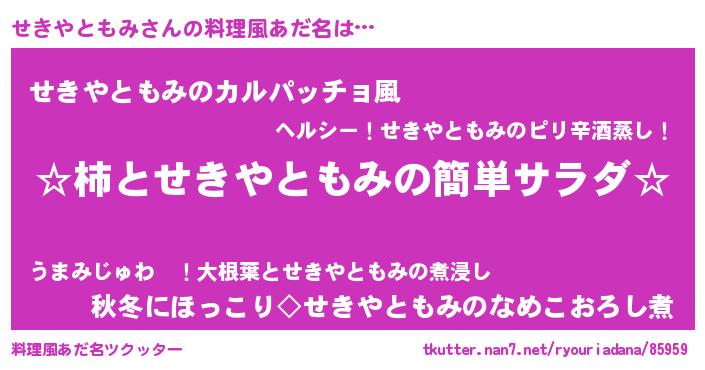 | ヘコむあだ名 | 『豆乳』『せきやともみ(苦笑)』 |