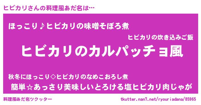 | 男性向けラノベタイトル風あだ名 | 『魔弾の王とヒビカリ』『ヒビカリの憂鬱』 |