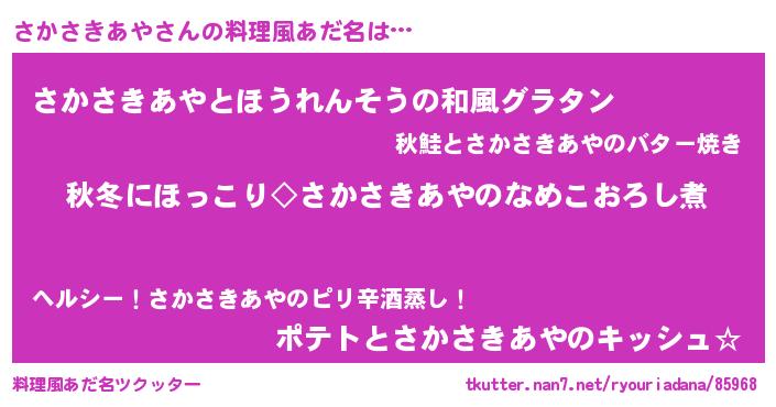 | ヘコむあだ名 | 『さかっちょ』『さかさきあや(震え声)』 |