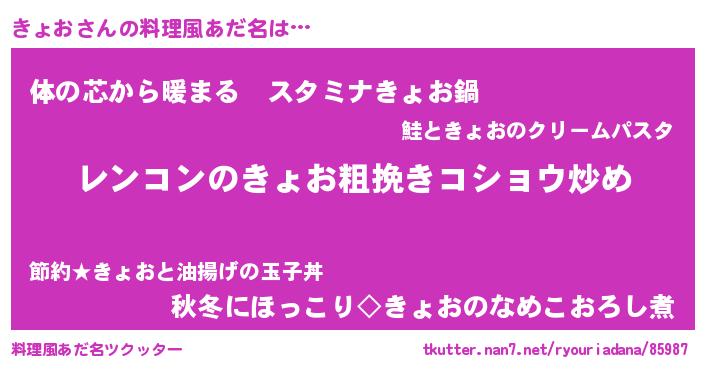 | 意味不明あだ名 | 『自称きょお』『きょおフォーエバー』 |