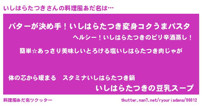 | ヘコむあだ名 | 『いしはらたつき(笑)』『いしっぺ』 |