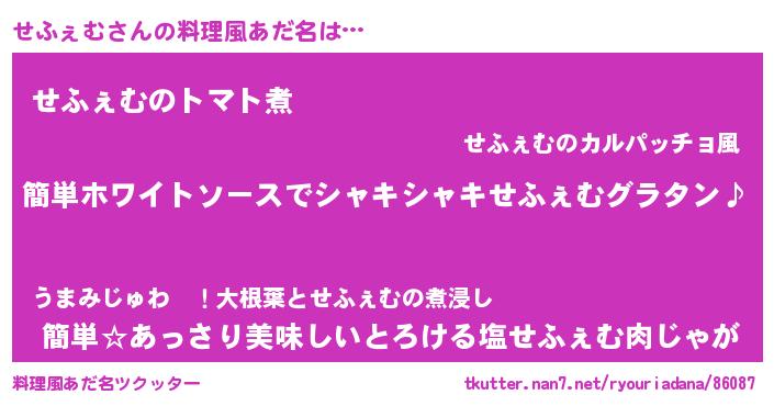 | ヘコむあだ名 | 『せふぷりん』『せふぇむ(笑)』 |