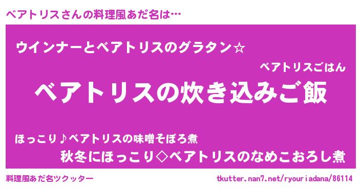 | 男性向けラノベタイトル風あだ名 | 『うちのベアトリスが世界を掌握している!』 |