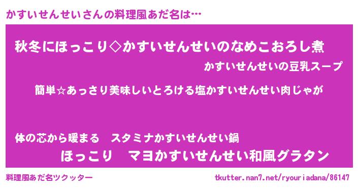 | ヘコむあだ名 | 『かすいせんせい(笑)』『かす太郎』 |