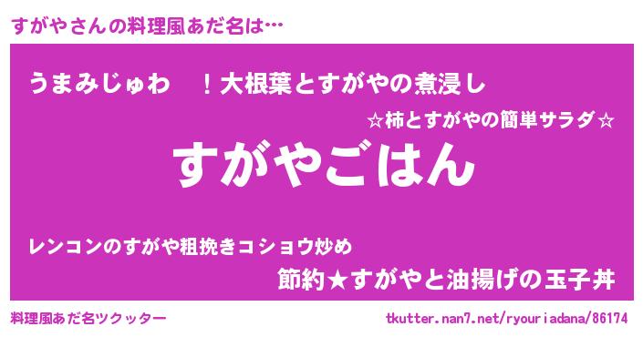 | 意味不明あだ名 | 『なめこ科すがや属』『ペロリンすがや』 |