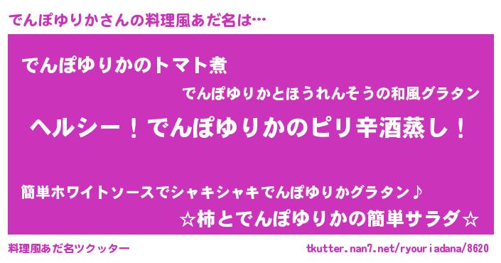 | 男性向けラノベタイトル風あだ名 | 『Re:でんぽゆりかから始める異世界生活』 |
