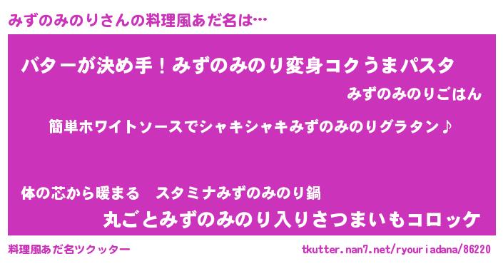 | 男性向けラノベタイトル風あだ名 | 『みずのみのりの嫁は女の子じゃないと思った?』 |