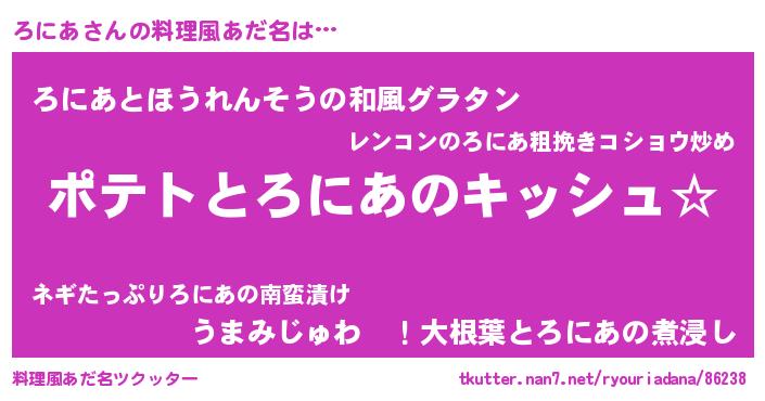 | 意味不明あだ名 | 『とにかく怪しいろにあ』『自称ろにあ』 |