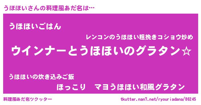 | ヒーロー風カッコイイあだ名 | 『ウルトラうほほいマン』『仮面ウホダー』 |
