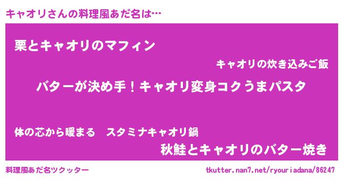 | 女子向けラノベタイトル風あだ名 | 『キャオリ恋絵巻』『キャオリの契約王妃』 |