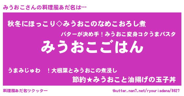 | 男性向けラノベタイトル風あだ名 | 『ミウオコスレイヤー』『みうおこの憂鬱』 |