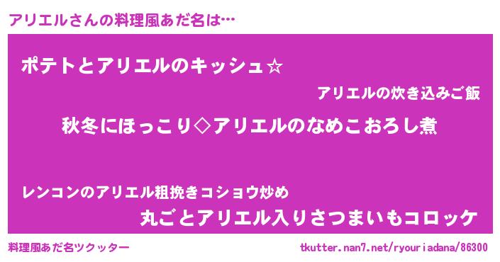 | 男性向けラノベタイトル風あだ名 | 『アリエルに滅ぼされるだけの簡単なお仕事です』 |
