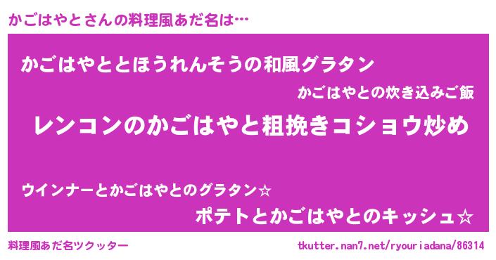 | ヒーロー風カッコイイあだ名 | 『超時空戦士カゴハヤト』『幻影騎士カゴ』 |