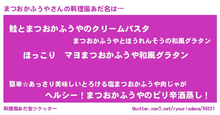 | 男性向けラノベタイトル風あだ名 | 『この素晴らしい世界にまつおかふうやを!』 |