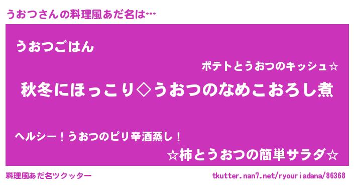 | 意味不明あだ名 | 『なめこ科うおつ属』『自称うおつ』 |