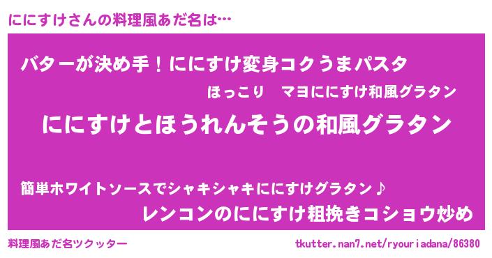 | 意味不明あだ名 | 『ニラ科ににすけ属』『自称ににすけ』 |