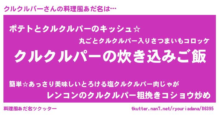 | 胡散臭い通販商品みたいなあだ名 | 『全米が絶賛したサプリメント…その名も「クルクルパー」』 |