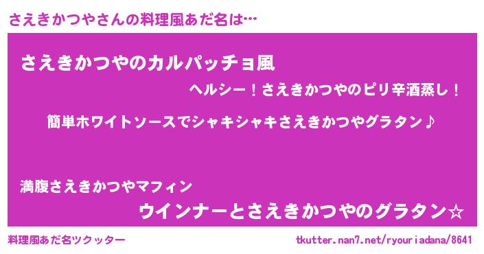 | 男性向けラノベタイトル風あだ名 | 『さえきかつやの嫁は女の子じゃないと思った?』 |