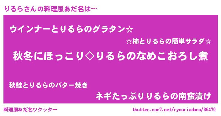 | 意味不明あだ名 | 『りるらフォーエバー』『ペロリンりるら』 |