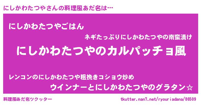 | 意味不明あだ名 | 『住所不定無職にしかわたつや(10歳)』 |