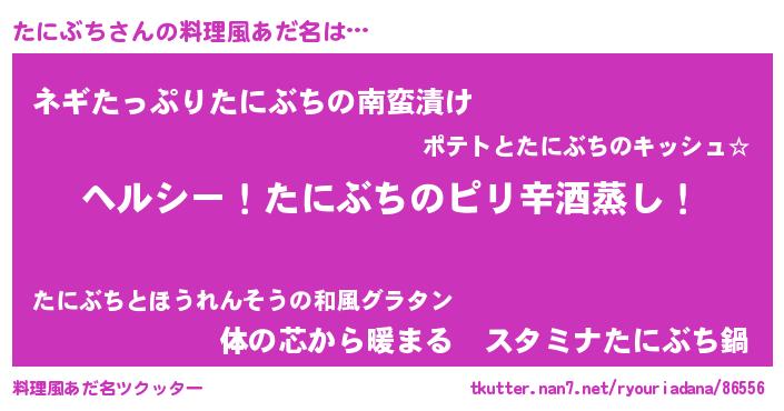 | 男性向けラノベタイトル風あだ名 | 『Re:たにぶちから始める異世界生活』 |
