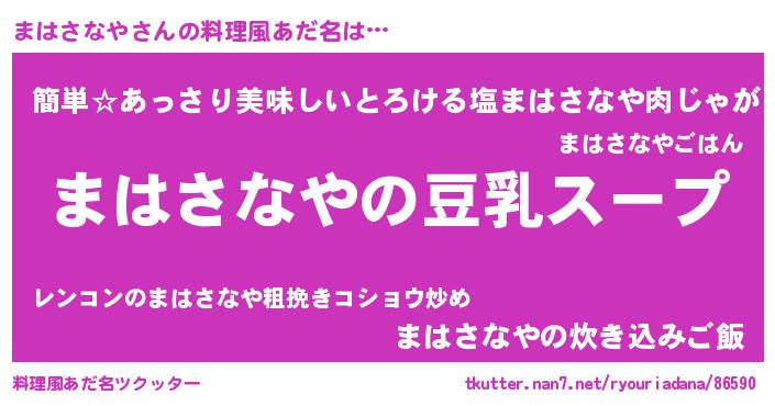 | 胡散臭い通販商品みたいなあだ名 | 『信頼と実績のサプリメント…その名も「まはさなや」』 |
