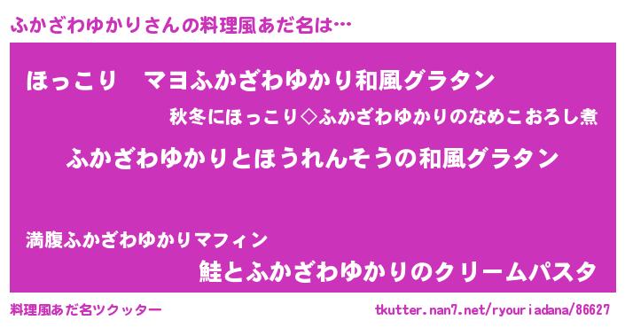 | ヘコむあだ名 | 『ふかざわゆかり(遠い目)』『ふかにー』 |