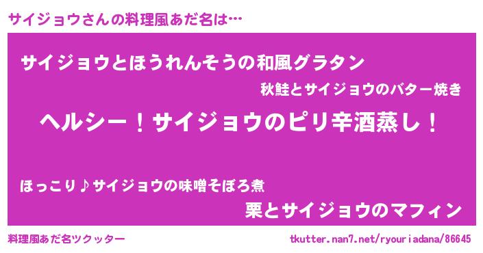 | 男性向けラノベタイトル風あだ名 | 『Re:サイジョウから始める異世界生活』 |