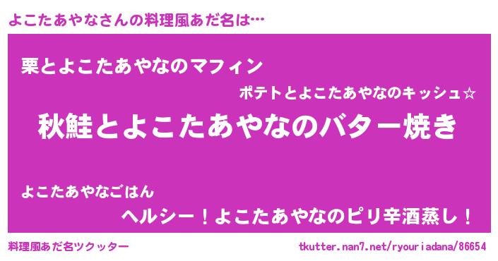 | ヘコむあだ名 | 『よこたあやな(苦笑)』『よこっちょ』 |