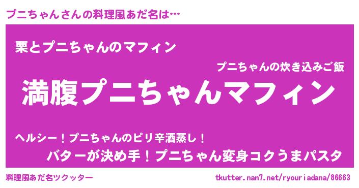 | 男性向けラノベタイトル風あだ名 | 『プニちゃんという概念が存在しない退屈な世界 』 |