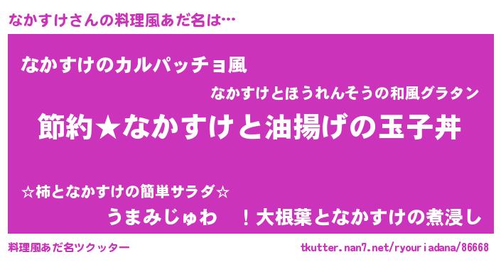 | 女子向けラノベタイトル風あだ名 | 『なかすけ姫と円卓の騎士』 |