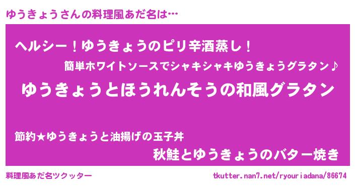 | ヘコむあだ名 | 『ゆうきょう(笑)』『ゆうを』 |
