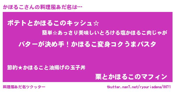 | 女子向けラノベタイトル風あだ名 | 『かほるこ恋絵巻』 |