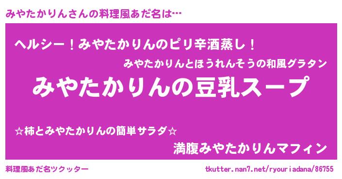 | ポケモン風あだ名 | 『ヒミヤタカリン』『ミヤセウス』 |
