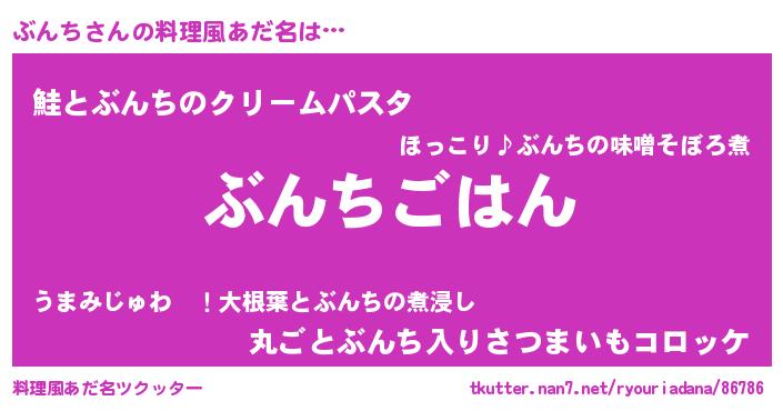 | 男性向けラノベタイトル風あだ名 | 『ブンチスレイヤー』『魔弾の王とぶんち』 |