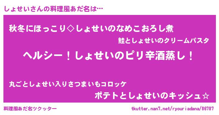 | 意味不明あだ名 | 『自称しょせい』『永久保存しょせい』 |