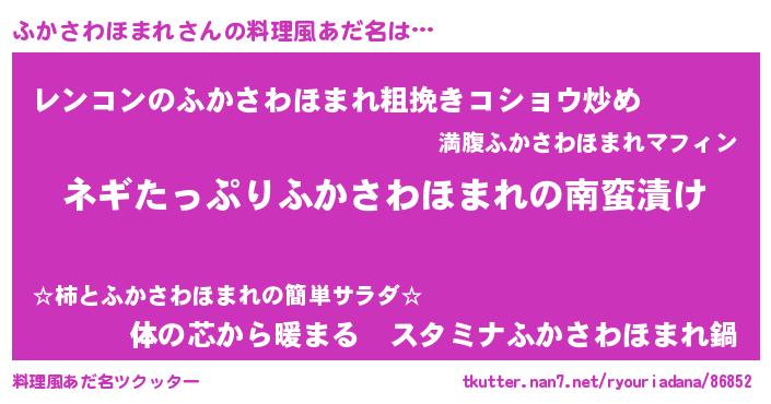| 恥ずかしいあだ名 | 『プリティーふかさわほまれ』『ふかちん』 |