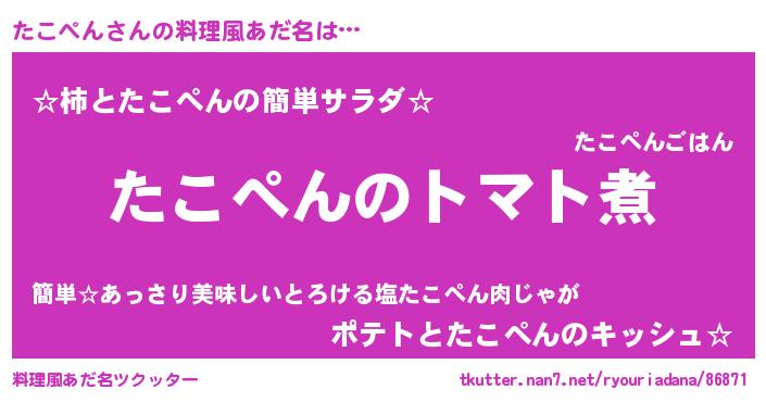 | 女子向けラノベタイトル風あだ名 | 『たこぺん夫妻のなれそめ』 |