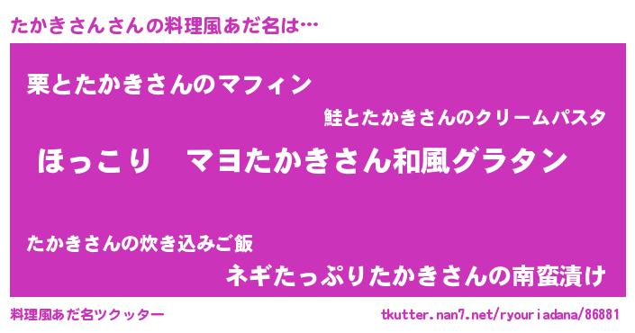 | ヒーロー風カッコイイあだ名 | 『仮面タカダー』『スーパータカキサン』 |