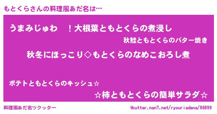 | 男性向けラノベタイトル風あだ名 | 『もとくらに滅ぼされるだけの簡単なお仕事です』 |