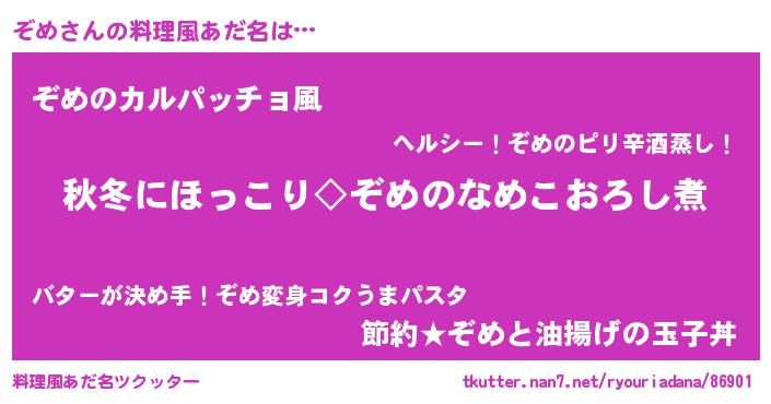 | 意味不明あだ名 | 『住所不定無職ぞめ(71歳)』『ペロリンぞめ』 |