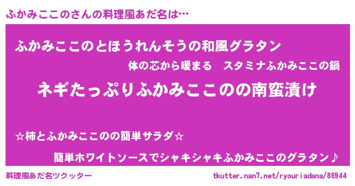 | ヒーロー風カッコイイあだ名 | 『スーパーフカミココノ』『銀牙騎士フカ』 |